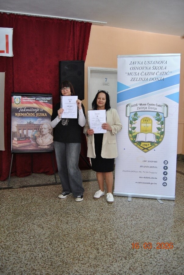 kantonalno takmičenje iz njemačkog jezika, koje je okupilo najbolje učenike iz cijelog Tuzlanskog kantona. Učesnici su pokazali izuzetno znanje, trud i ljubav prema učenju stranih jezika. Takmičenje je proteklo u ugodnoj i motivirajućoj atmosferi, uz fer i korektno nadmetanje. Takmičenju su prisustvovali savjetnica Pedagoškog zavoda Lemana Bajrektarević, kao i gradonačelnik Grada Gradačac Hajrudin Mehanović koji je i otvorio početak takmičenja. Najuspješniji učenici takmičenja su: