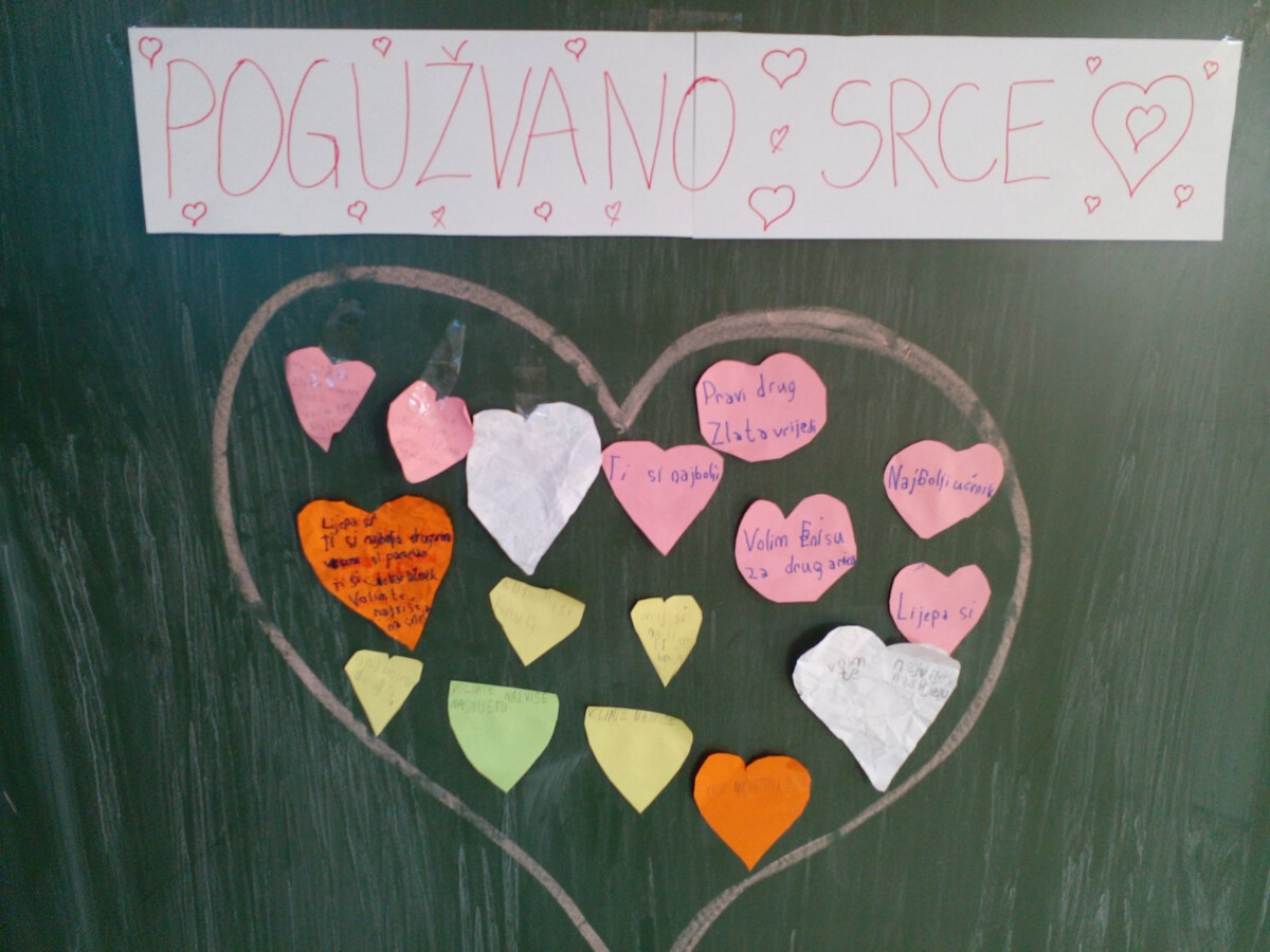 je radionica u okviru Mjeseca borbe protiv vršnjačkog nasilja, pod nazivom "Pogužvano srce". Radionicu je realizovala, sa učenicima IId i IVd razreda, učiteljica Meliha Ibranović. Cilj radionice bio je razvijanje empatije kod učenika i podizanje svijesti o tome kako riječi i postupci mogu uticati na osjećanja drugih. Kroz aktivnosti radionice , učenici su imali priliku da na simboličan način prikažu kako ružne riječi mogu "zgužvati" nečije srce, ali i kako lijepe riječi mogu pomoći da se osjećanja poprave. Radionica je protekla u pozitivnoj atmosferi i aktivnom učestvovanju učenika.