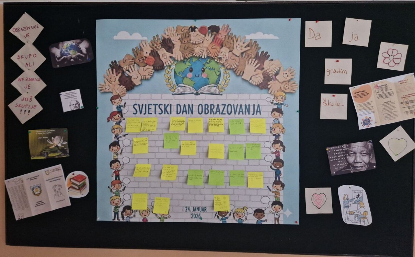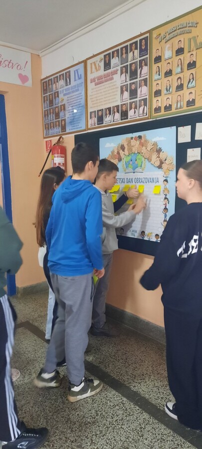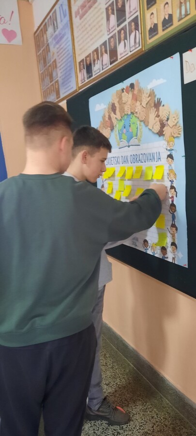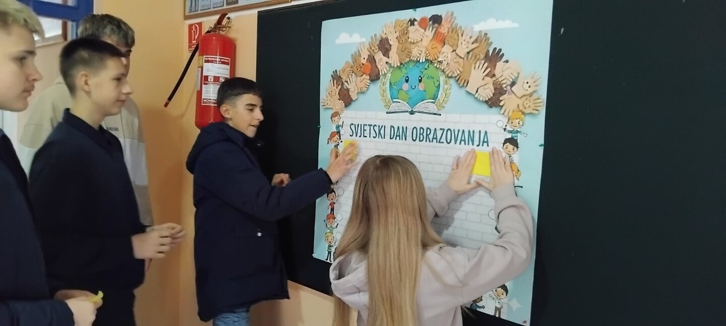 obrazovanja, pedagogica Amela Silajdžić i nastavnica engleskog jezika Majda Grabčanović zajedno sa učenicima obilježile su ovaj važan datum kroz niz kreativnih i edukativnih aktivnosti. Učenici su učestvovali u radionici, kroz koje su imali priliku izraziti svoje stavove o značaju obrazovanja, znanja i cjeloživotnog učenja. Aktivnosti su protekle u pozitivnoj i podsticajnoj atmosferi, uz aktivno učešće učenika i razvijanje njihove kreativnosti, saradnje i svijesti o važnosti obrazovanja u savremenom društvu.