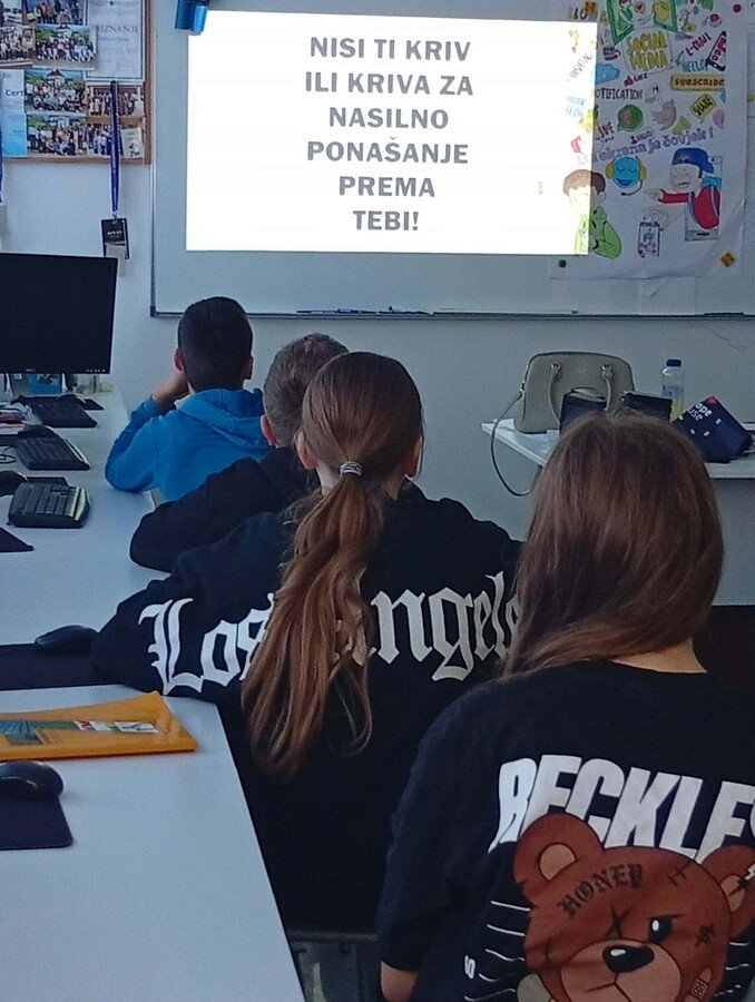 realizovana je aktivnost prezentacije edukativnog video spota „Biraj riječi – hejt spriječi“ i „Vršnjačko nasilje: šta je i kako se boriti protiv njega“ za učenike osmih razreda.